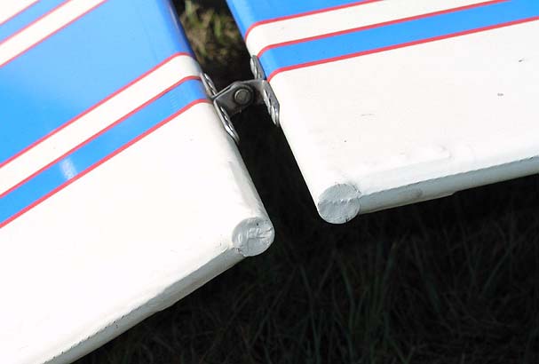 Many kit buyers start with just the tail section since that is the least expensive way to begin a kit. I offer the following tips based on my own experience. For many of us, this will be our first experience with fabric covering, and we may be a bit apprehensive. Starting on the tail section is a great way to learn how to cover with fabric. The parts are all relatively small and easy to manage on a common table top. If you make a mistake and ruin one piece of covering, it's easy and inexpensive to strip it off and do it over. Most builders won't make a major mistake though, and after finishing the tail section pieces you will feel very confident about tackling the larger wings and fuselage without any worry. It's a real confidence builder to do the tail sections, and you'll be proud of your work." Topics:1. Finishing tape requirements along edges and over seams. 1. Finishing tape requirements along edges and over seams. When it came time to put the fabric covering on the tail of my plane, I had several questions so I called Dave Goulet at the Challenger factory. Specifically I wanted to know if finishing tape was required along the edges of the tubes, especially over the sewn seams. Dave said that this is not required. It's a personal choice. The finishing tapes will provide a bit more abrasion protection on the tube edges, but they are not needed for strength or safety. Although the FAA does require such tapes on STC aircraft, there is no requirement for that on experimental aircraft. Actually, the FAA also requires at least medium weight fabric on STC aircraft, whereas we can use the lightweight fabric on our experimentals. Dave added that if I don't use the finishing tape, then I should be sure to keep the sewn seam exactly along the centerline of the tube if at all possible. Also, make sure I have put a good coat of Poly Tak cement on the tube before putting the socks on, and then after shrinking, to make sure I have a good Poly Tak application along the outside tubes where the fabric is. That's what I did, and I prefer the smooth look of the fabric without the finishing tapes. 2. Installing the socks and shrinking the fabric. Putting the fabric socks on the tail and shrinking them tight is the first "magic" experience the new builder is likely to have. It's at this point that tubes and fabric come together to become, and look like, a part of an airplane. Before putting the socks on, lightly sand the perimeter of the tubing where the fabric will be glued, then wipe the tubes down with MEK to clean them as much as possible. Cover all the gusset edges and rivet heads with fabric tape. Brush a good coat of thinned Poly Tak on those tubes, then when dry (15 minutes), brush on a second coat and allow that coat to fully dry as well. The socks can now be pulled over the tail section. Poly Tak the fabric down to the tubes at the open end after trimming off excess fabric. But, do not put any Poly Tak on the rest of the perimeter tubes at this time. You will want to be able to shift the fabric around the perimeter tubes a little as you shrink it in order to keep the sewn seams aligned along the tube centerlines as closely as possible. Shrinking the fabric is done with the iron in three steps. The first step is to shrink it at a temperature of 250 degrees (Fahrenheit). That will begin the shrinking process but will not bring the fabric up tight against the tubes. Next, increase the temperature of the iron 300 degrees and repeat the process. This will give a definite tightness to the fabric. During this shrinking process, try to apply heat to each side of the tail surface equally in order to keep the sewn seams lined up on the tube centerline. Since the perimeter tubes are not actually glued down yet, you will be able to move the fabric a little on the tubes and adjust the appearance of the perimeter. Final shrinking is done at 350 degrees for a full tightness. Just repeat the procedure done at the lower temperatures, applying heat to each side of the tail surfaces. It's important not to apply heat in excess of about 400 degrees because the dacron fabric will go from tight to suddenly not so tight as the temperature hits around 450 degrees. Once the fabric gets that hot, it will relax a bit and cannot be retightened again. That's a big no-no and will spoil your day. The only fix for fabric that has been heated beyond its maximum point is to throw it away and start over with new. After you are satisfied with the alignment of the sewn seams and all wrinkles are ironed out at 350 degrees, you can then glue down the perimeters. Brush thinned Poly Tak along the entire perimeter where the fabric touches the metal tubes. Try not to get too sloppy with the Poly Tak, but if some gets on the fabric where there is no metal under it, that's not a real problem. Later you will be painting the fabric and the Poly Tak spots can covered up with the base layers of the paint. 3. A modification that gives tube junctions a smoother appearance.