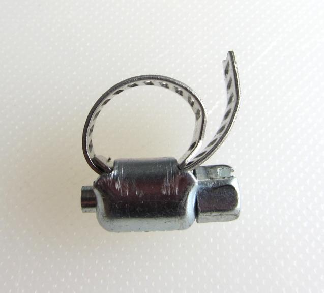 The first one that many inexperienced builders will grab is the worm drive hose clamp common in the automotive industry. While these clamps are a great choice for larger hoses in cooling systems, they are a very poor choice for small lines in the fuel system. The first problem with them in small sizes is that they tend to become out-of-round quickly when they are tightened. A clamp that is not round will not seal well on a round hose and barb. The next problem with them is that many people tend to over tighten them causing them to cut into the exterior of the fuel line. I do not recommend using worm drive clamps on fuel lines at all, there are better options.