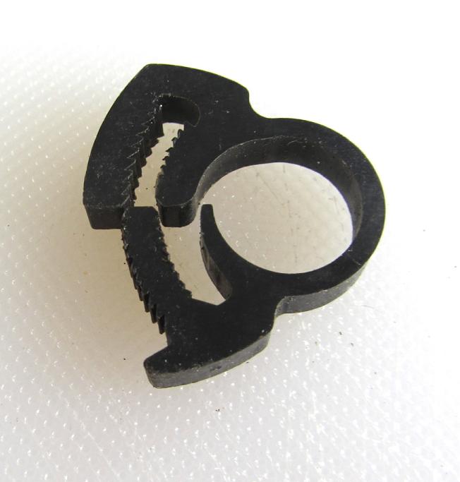 Another form of clamp that I really like is the spring steel clamp. Squeezing the end tabs with pliers, sliding it into place on the hose, and releasing it will install this clamp. The spring tension in the steel will provide uniform pressure on the hose and will actually adjust itself as the hose expands and contracts with temperature changes. When the correct size clamp is used these clamps cannot be under or over tightened. They work wonderfully on ¼” Urethane fuel lines as well as on high quality automotive style fuel lines. These clamps are inexpensive, easy to install and can be used over and over again. There is one other style of clamp that is specified for