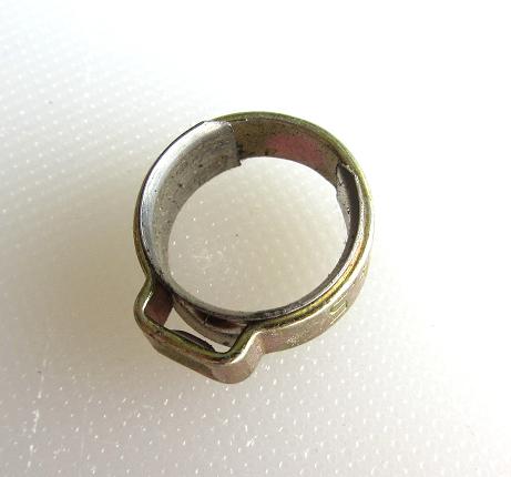 Another common fuel line used in our application is automotive style rubber hose. This can be obtained at your local auto parts store. There are many brands available on the market, however not all are created equal. My experience with regular automotive line is that it tends to crack and weather quickly when exposed to the elements. When I experimented with this type of line I was very disappointed, as I never knew how long a line would go before it failed. In the end I came to feel there must be better quality options available. Yet another type of fuel line that has really only become common in the last 5-10 years is fuel injection hose. This type of fuel hose is rated for at least 50 psi, and usually substantially more. It has a liner inside it that is resistant to ethanol. If you are using an engine with EFI, you must use this type of hose, and special clamps that we will discuss in the next section. Fuel injection hose may also be a very good option for a more durable fuel line on carbureted engines. The main drawback to this type of line is that it is expensive, currently (2013) in the $4 per foot range. One other noteworthy consideration on all of these fuel lines is that the inside of the lines are not necessarily the same material as the exterior and may not exhibit the same resistance to alcohol or other chemicals found in fuel. This becomes very important if the fuel hose is used inside a fuel tank for a pickup line. Beware that any hose you use inside a fuel tank will likely have a very short service life and needs to be checked and possibly replaced often. These are out of sight and often forgotten about. Fuel Line Clamps