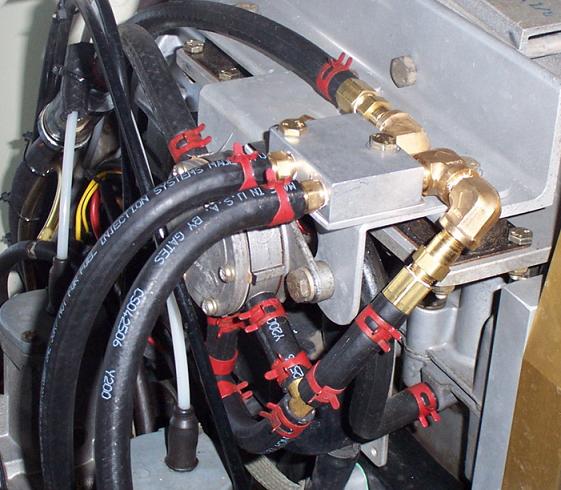 With blue urethane hose on a sharp barbed metal fitting, it is probably unnecessary to use a clamping device at all. There is no way a 2-6 psi pressure will ever overcome a sharp barb. The hose connection will remain secure until way beyond the useful service life of the hose. To test this theory, install a dry new urethane hose onto a sharp barb fitting and attempt to remove it by pulling on it. Good luck! Don’t scrape your knuckles when the hose finally tears in two! My recommendation is to not take any chances. Use only metal fittings. The fuel delivery system is too critical to try to save money and/or weight. Metal fittings can be used over and over while plastic fittings should be replaced annually when replacing the fuel hose, so in the end it may be less expensive to use metal anyway. Dual Pump Systems
