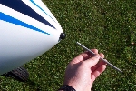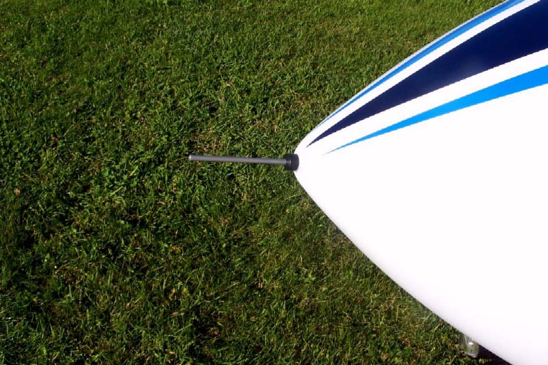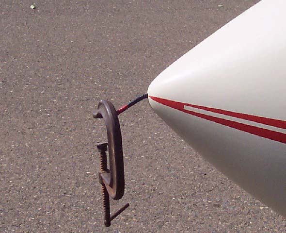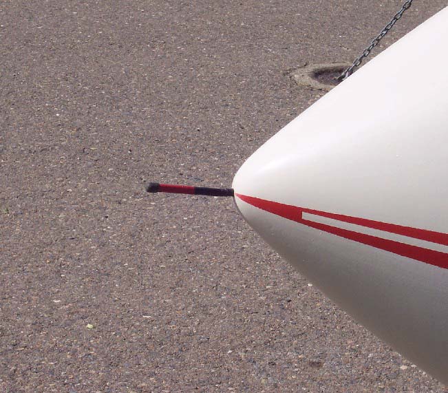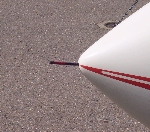 Step#5) The aluminum Pitot tube may need to be sanded slightly to achieve the fit you desire. The idea is to sand the aluminum tube until it will slide into the Pitot Pal adapter approximately 1 7/16" and then press into a slightly smaller fit inside the adapter. This will lock the Pitot Tube in place and if you wish to remove it a slight twist will release it. See diagram below. Your Pitot Pal is now installed. Make sure that if you remove the Pitot Tube for any reason, that you replace it before flight. Pitot Pal installation instructions submitted by: This is a very easy way to provide a flexible pitot tube set up. It consists of a 6" piece of wire wrapped cable housing, a length of flexible tubing, rubber or gas line will work just fine, that slips over the end of the cable housing. Just drill a hole thru the nose cone point, insert the cable housing and slip the flexible tubing over it and slip the other end of the flex tube over the fitting on the airspeed indicator. Some, like myself, will want to provide some extra thickness at the inside of the cone point area for more support. If the the inside of the cone point is filled with copped fiberglass and resin prior to drilling, the the pitot is removable. If on the other hand the extra fiberglass support is added after the cable housing has been inserted it will not be removable. Both ways work fine. Pitot Tube installation instructions submitted by: |