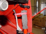 In this example, the PTT button is a much larger, rectangular button than the others and uses Velcro to attach it to the forward down tube. |