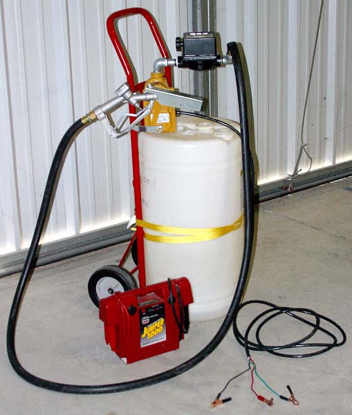 $119.00 - Fuel Meter $50.00 - Aprox. Shipping on Pump & Meter $10.00 - 20 Gallon Neoprene Fuel Barrel $65.00 - Dolly $55.00 - 12v Jump Start Battery Pack $6.00 - 3 ea. Alligator Battery Clamps $5.00 - 1 ea. Tie Down ----------- $508.50 - TOTAL |