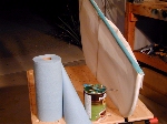 Using your hand, rub the fabric down onto the glued tube working out any wrinkles and securing a good bond. At this point, the fabric can still be pulled away from the structure and repositioned if needed. |