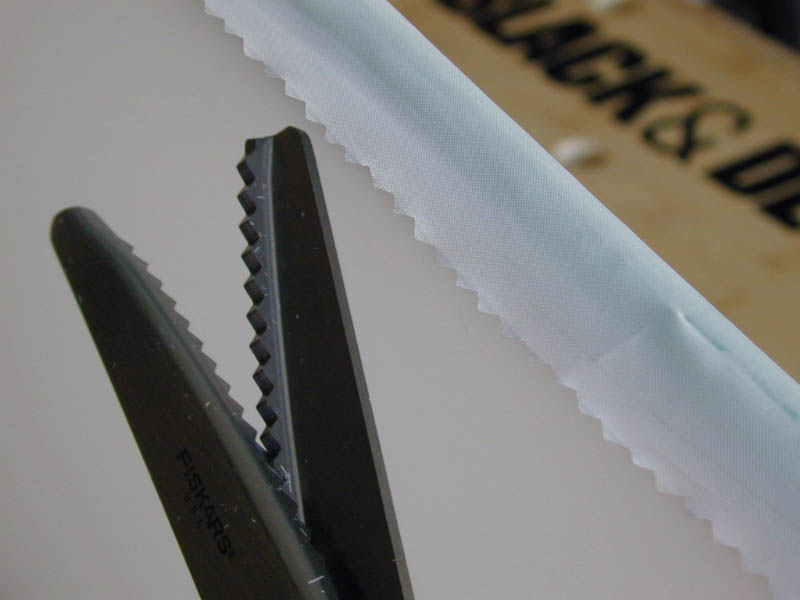 Once it is fitted around the tube, you can do any additional cutting and repositioning to obtain a good fit. Now take a hot iron and 'set' the glue joint with just a small line down the front of the tube. You can take a pencil and mark a cut line on the excess fabric on the inside of the tube. The excess fabric can now be gently pulled up and cut with the scissors. When fitted and the excess cut away, you should have a fabric wrap of about 270 deg around the tube. |