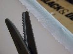 Working in strips of about 6" to 10", reapply glue over the glue bond area and rub it down into the fabric with a Blue Scott Towel (white paper towels leave too much lint behind). Be sure to wipe away any excess glue left on the surface of the fabric. Allow to dry. |