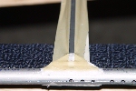 CAUTION: You want to do this "JUST ONCE", so you need to get the glue up into the fabric the first time. If you do not, reapplying MEK will only serve to separate the fabric from the aluminum tubing. If this happens, you will need to remove the fabric, clean off all glue residue from the aluminum tubing and reapply two coats of Poly Tak and start over. |