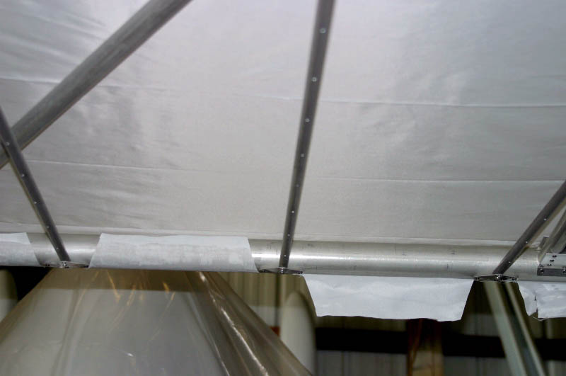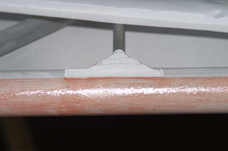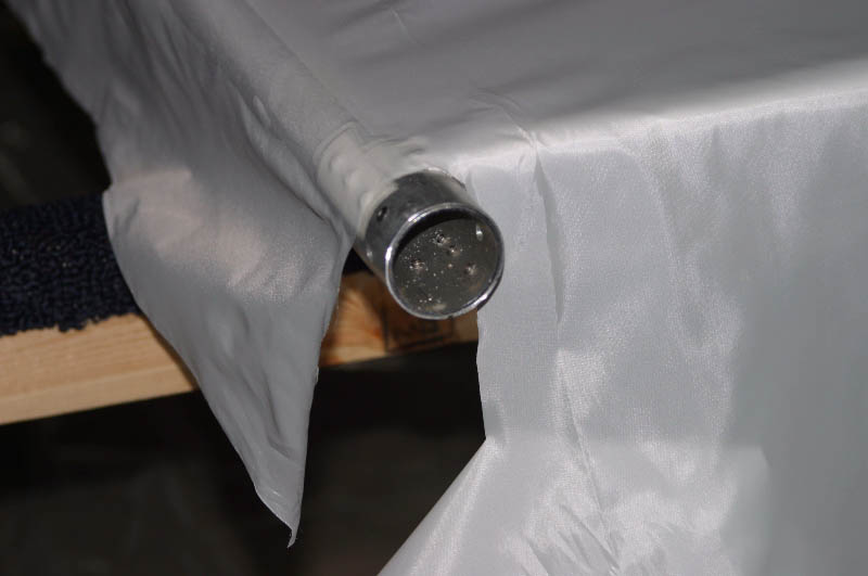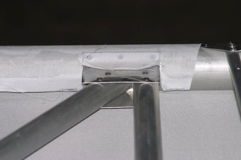 Be sure to apply three (3) layers of the Dacron tape over all rivets and sharp edges, like the gussets and aluminum sheeting edges. |