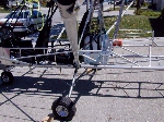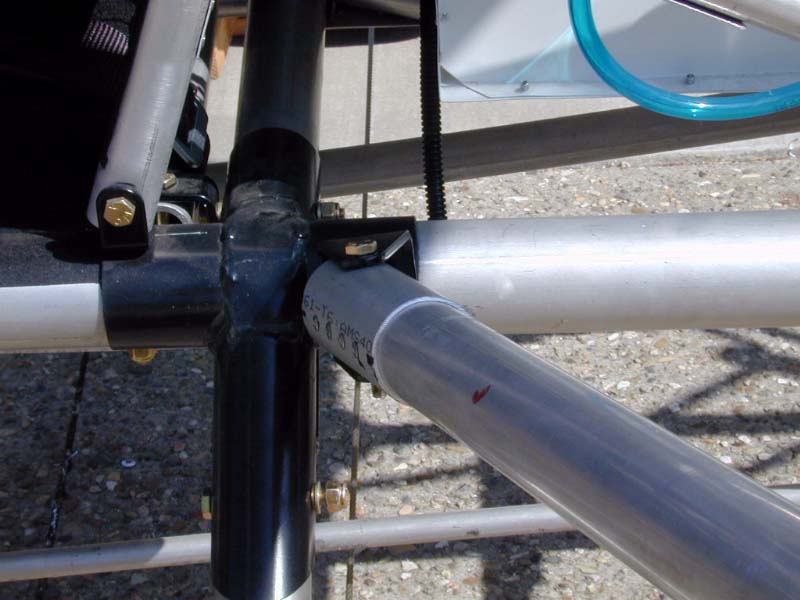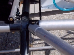 Find a helper to assist you during the prefit. Have a temporary stand available, such as a step ladder, on which you can rest the outboard end of the wing. The fitting process can take some time and anyone trying to hold up the outboard end of the wing will get very tired. Secure the inboard ends of the wing spars to the Rony brackets at the root tube and prop the outboard end of the wing up on the stand. Slightly loosen each strut bracket on the wing spar, and slightly loosen each Rony bracket on the fuselage longeron. |